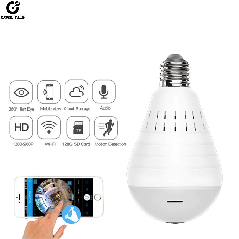 panoramique Fisheye ampoule lampe WIFI caméra 360 degrés WiFi CCTV cam