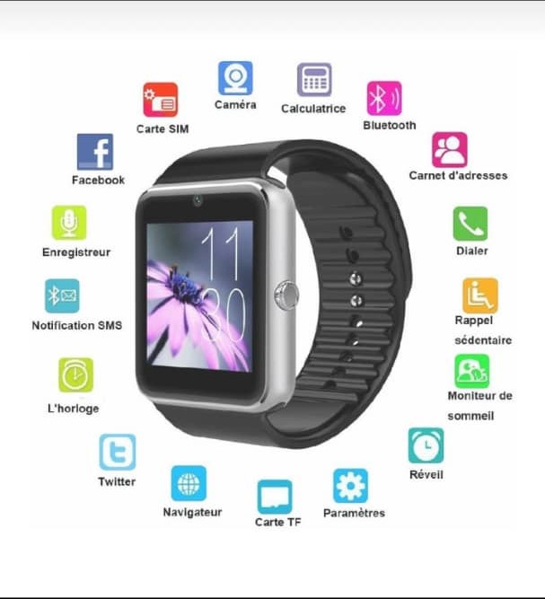 MONTRE PORTABLE AVEC CARTE SIM, CAMERA, Bande anti-sueur, Port USB