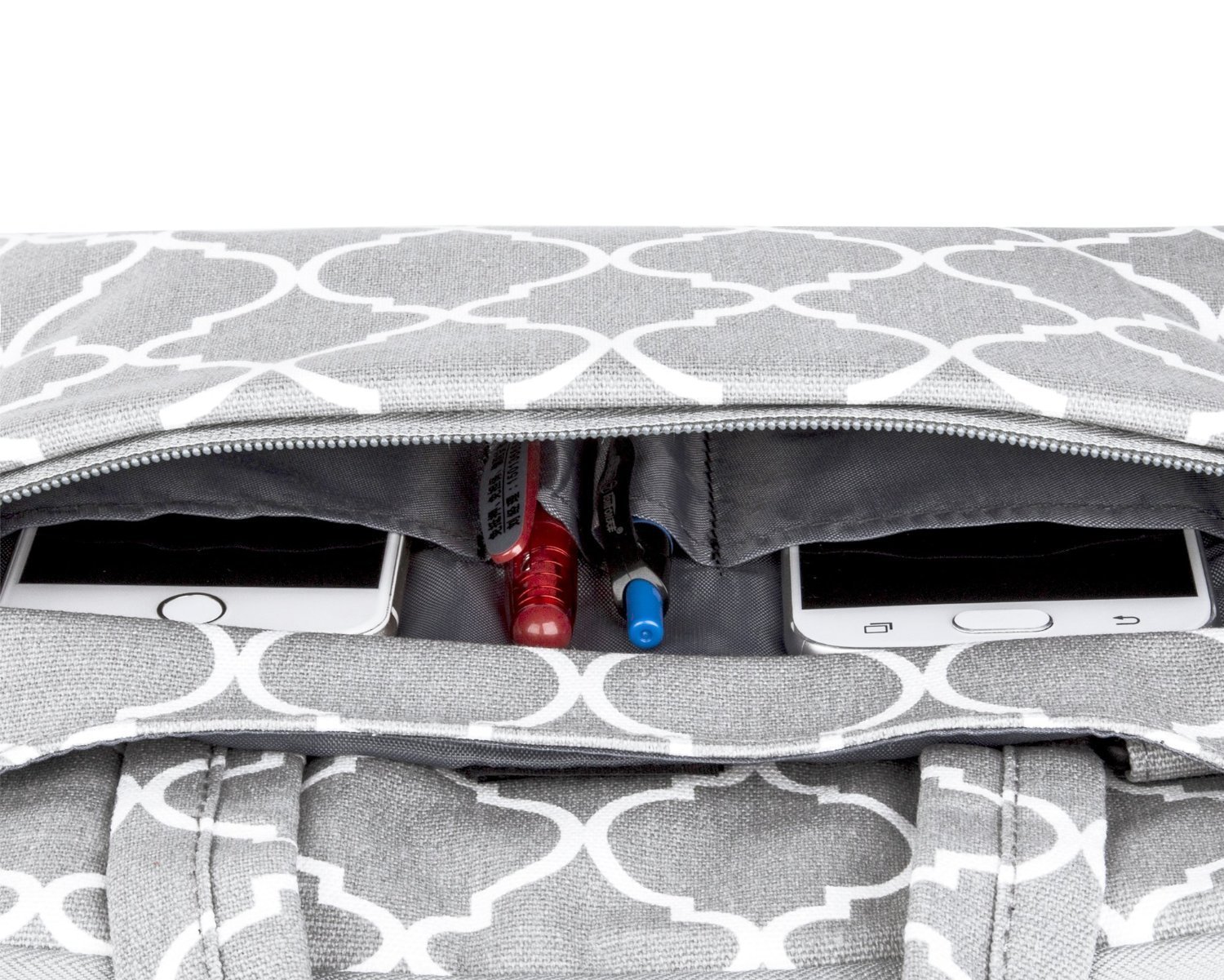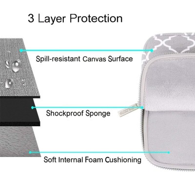 Le tissu de toile extérieur de la sacoche est imprimé avec des motifs Quatrefoil / Treillis marocain qui vous permettent de transporter votre Macbook / ordinateur portable / Notebook / Ultrabook dans un style unique et élégant.L'ouverture en haut de la sacoche avec fermeture éclair pour faire glisser en douceur et permettre un accès pratique à votre ordinateur portable.